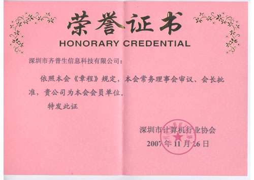 計(jì)算機(jī)行業(yè)協(xié)會(huì)會(huì)員榮譽(yù)(證書)
