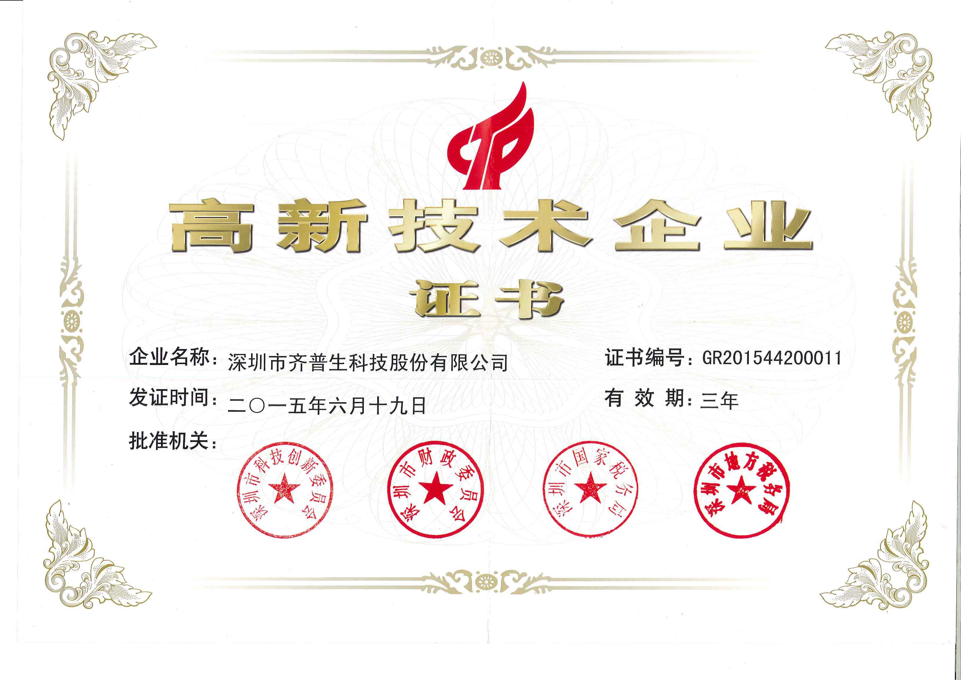 國(guó)家級(jí)高新技術(shù)企業(yè)證書
