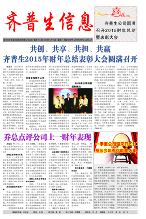 共創(chuàng)、共享、共擔、共贏 齊普生2015年財年總結(jié)表彰大會圓滿召開