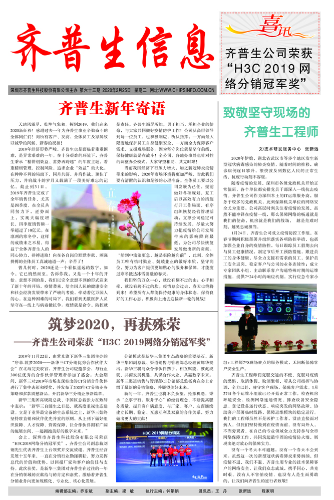 筑夢2020,再獲殊榮 ——齊普生公司榮獲“H3C2019網(wǎng)絡(luò)分銷冠軍獎”