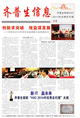 新IT 贏未來(lái) 齊普生榮獲“H3C 2014年優(yōu)秀總代理”大獎(jiǎng)
